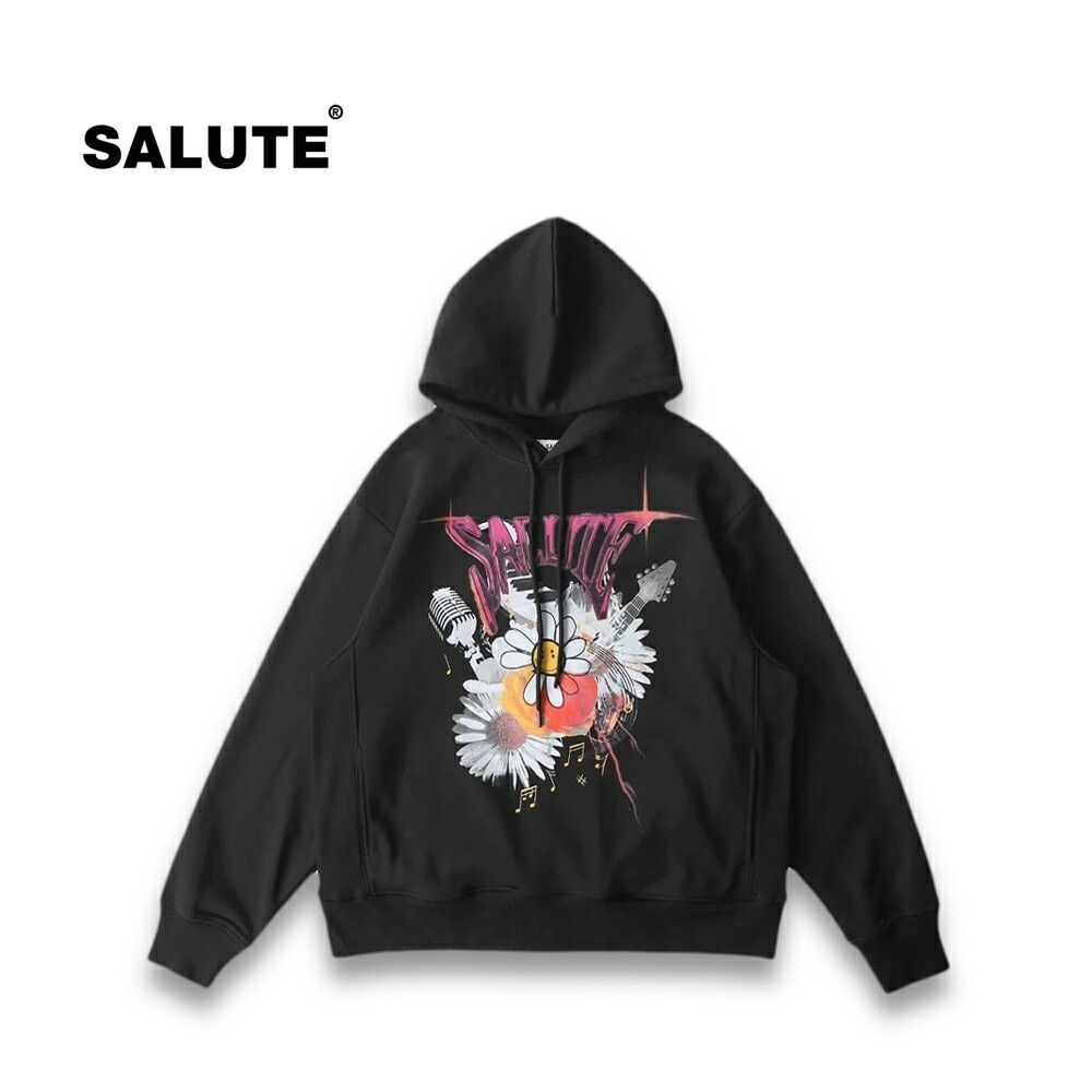 SALUTE サルーテ FLOWER ANARCHY HOODIE BLACK パーカー