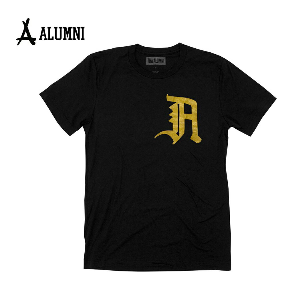 ALUMNI CLOTHING アルムナイクロージング OLD ENGLISH LOGO TEE BLACK + GOLD メンズ インポート KID INK ロゴTシャツ M L XL