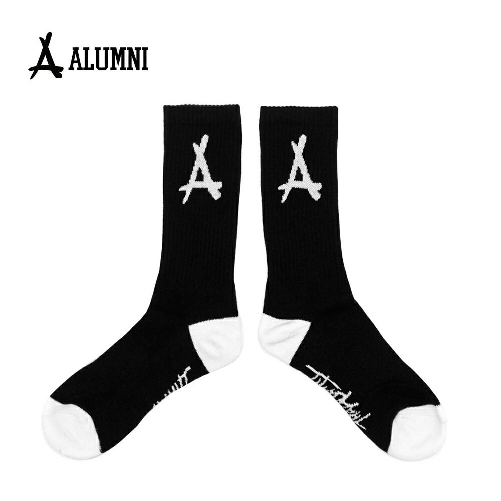 ALUMNI CLOTHING アルムナイクロージング ALUMNI LOGO SOCKS BLACK + WHITE メンズ インポート KID INK ソックス