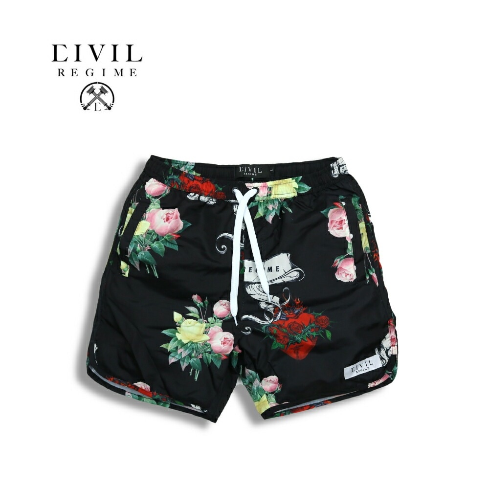 Civil Regime シビル・レジーム BURNING HEARTS SWIM SHORTS BLACK アロハショーツ