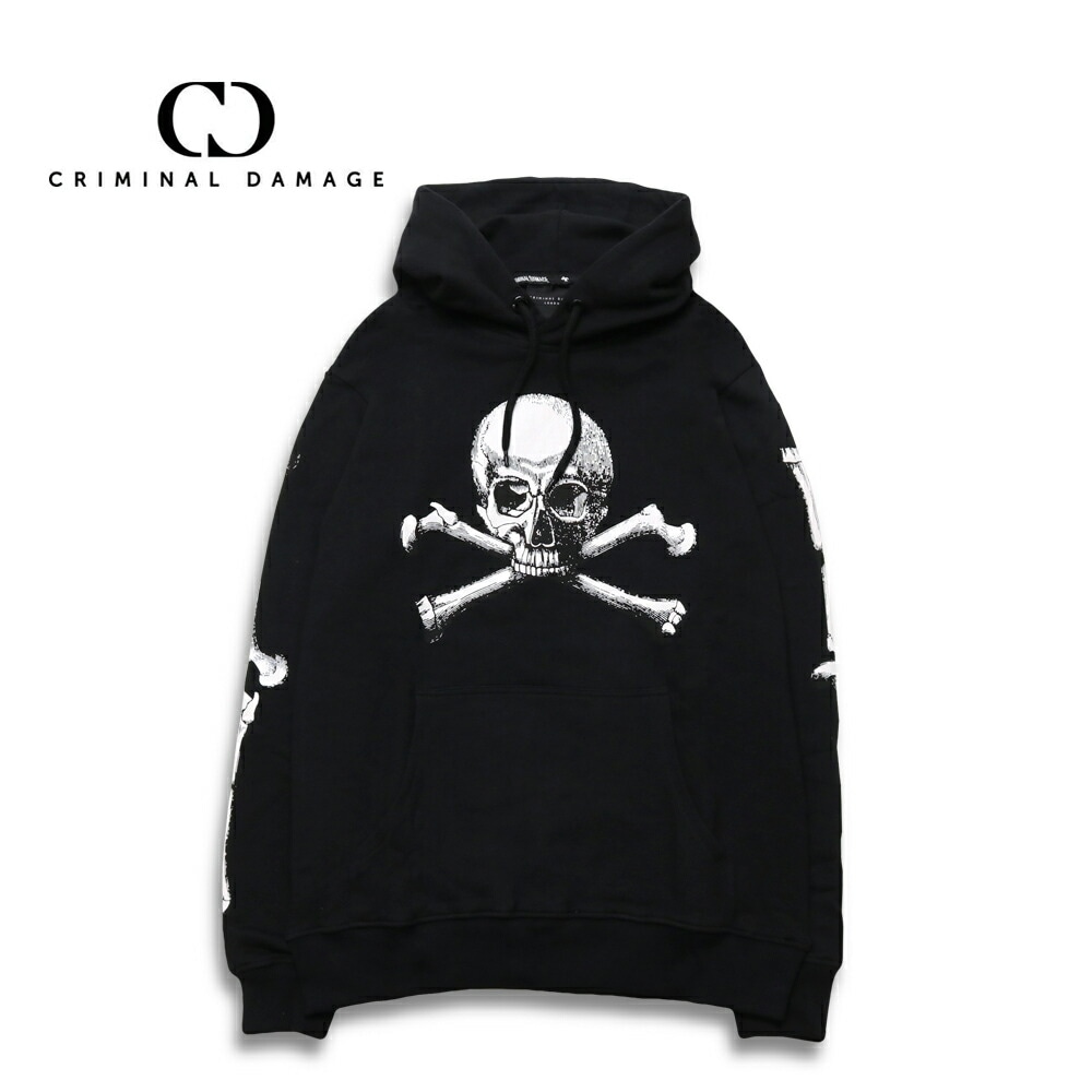 criminaldamge クリミナルダメージ SKULL CROSSBONE HOOD パーカー BLACK M/L/XL