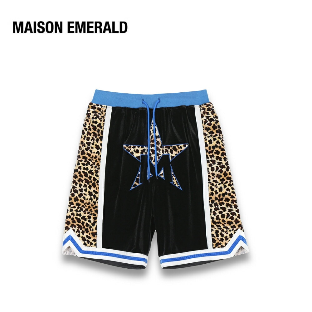 MAISON EMERALD メゾンエメラルド LEOPARD STITCHING 5POINT PANTS BLACK ショーツ