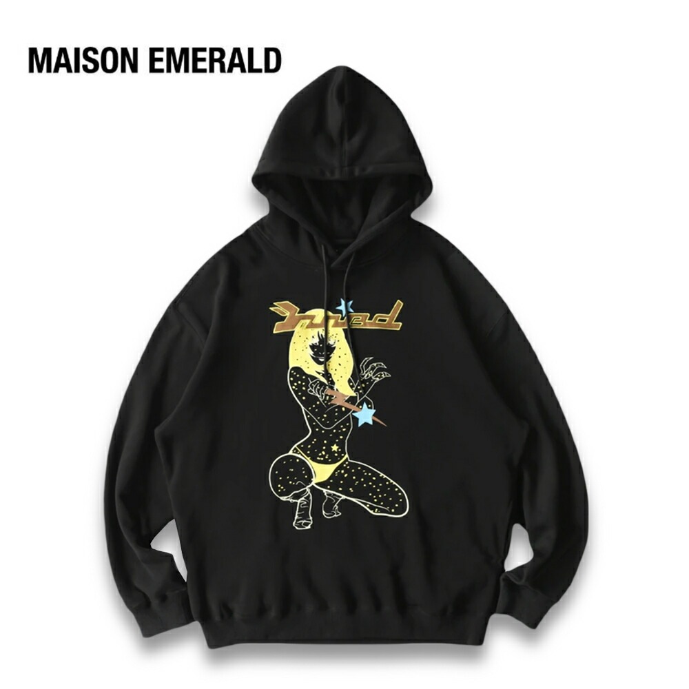 MAISON EMERALD メゾンエメラルド COLORFUL STAR HOODIE BLACK パーカー