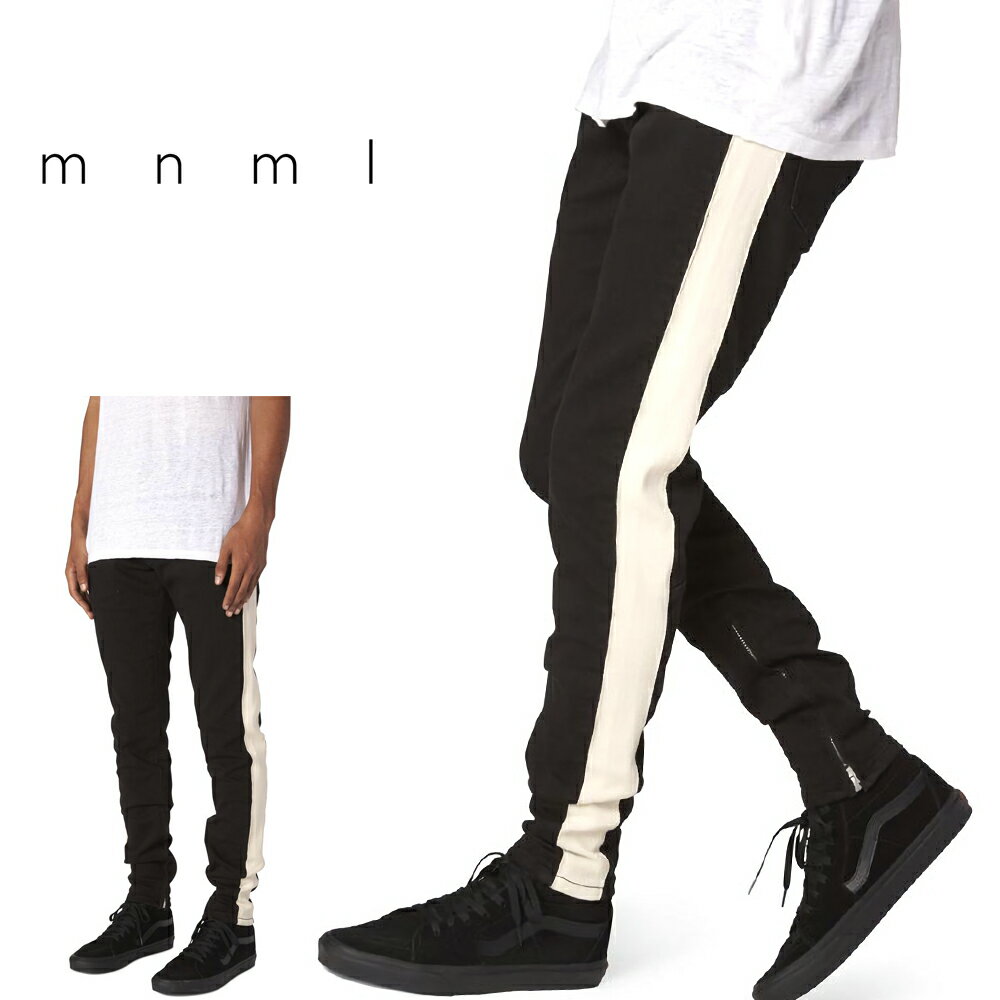 mnml ミニマル M75 TRACK STRETCH DENIM BLACK/WHITE トレンド ストレッチ デニム ラインパンツ スキニー 28/29/30/32/34