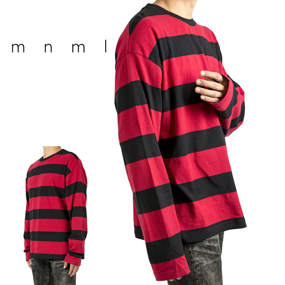 mnml ミニマル BIG STRIPED L/S TEE BLACK/RED トレンド ドロップショルダー ロングTシャツ ストライプ S/M/L/XL