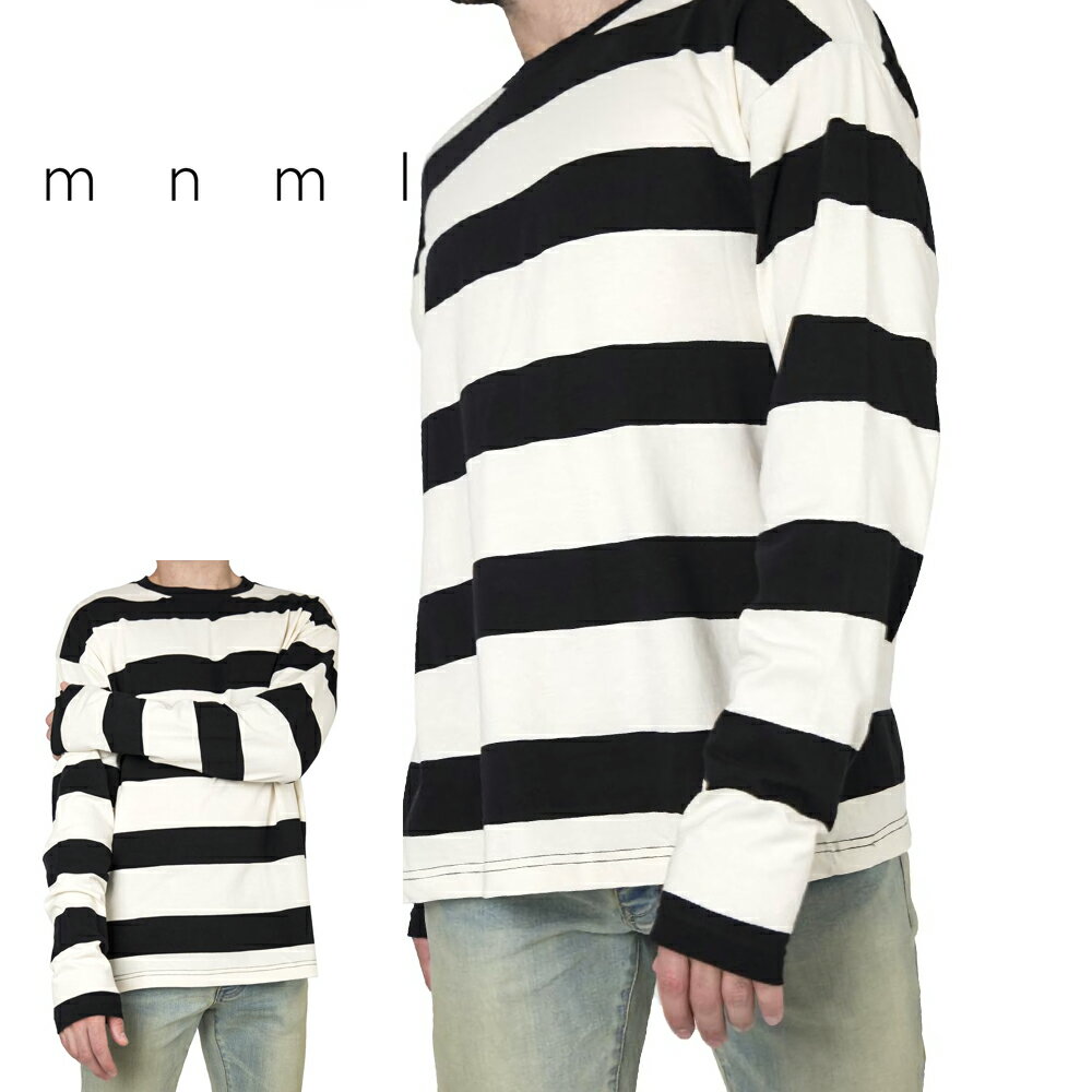 mnml ミニマル BIG STRIPED L/S TEE BLACK/WHITE トレンド ドロップショルダー ロングTシャツ ストライプ S/M/L/XL
