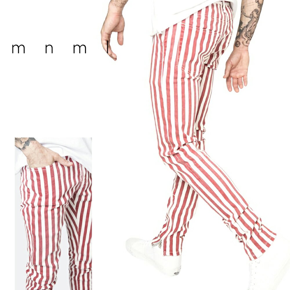 mnml ミニマル M90 STRIPE STRETCH DENIM RED/WHITE トレンド ストレッチ デニム パンツ ジーンズ 28/29/30/32/34