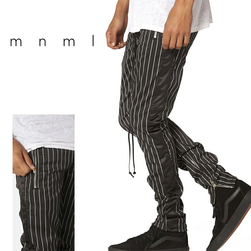 mnml ミニマル PINSTRIPE TRACK PANTS BLACK/BLACK トレンド トラック ライン パンツ S/M/L/XL