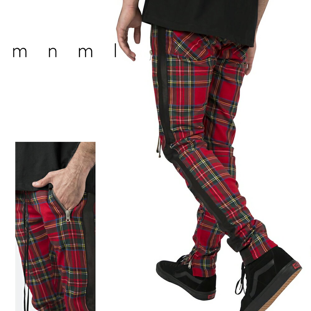 mnml ミニマル PLAID TRACK PANTS RED/BLACK トレンド トラック ライン パンツ S/M/L/XL