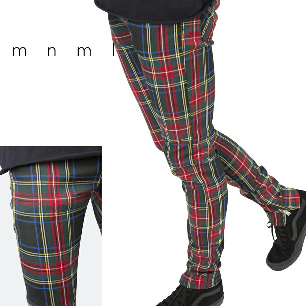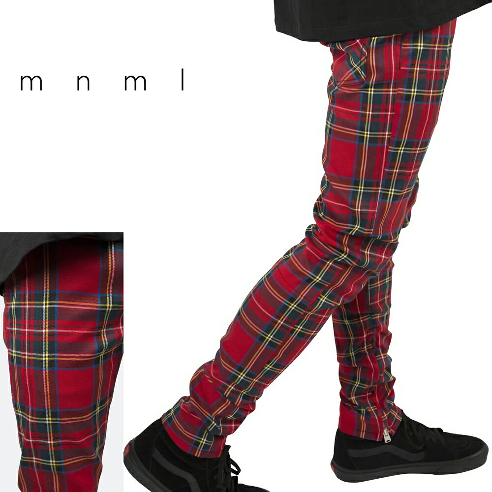 mnml ミニマル M85 TARTAN CHECK DENIM RED/GREEN トレンド ストレッチ デニム パンツ ジーンズ 28/29/30/32/34
