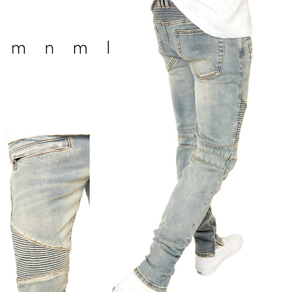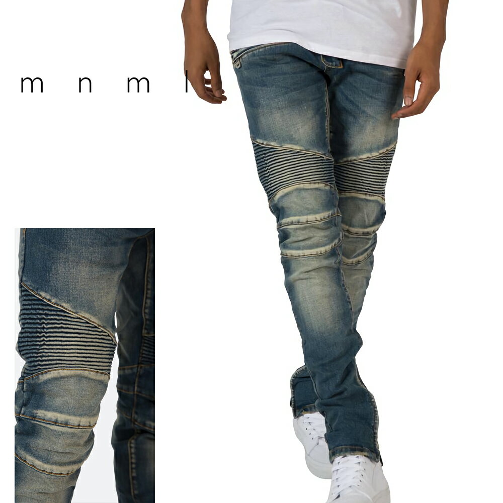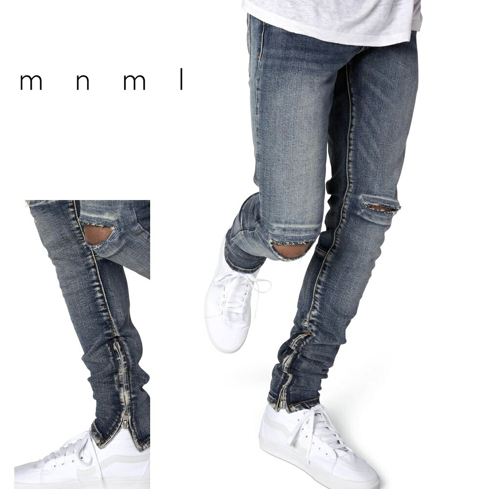 mnml ミニマル M1 STRETCH DENIM Blue トレンド ストレッチ デニム パンツ ジーンズ アンクルジップ 28/29/30/32/34