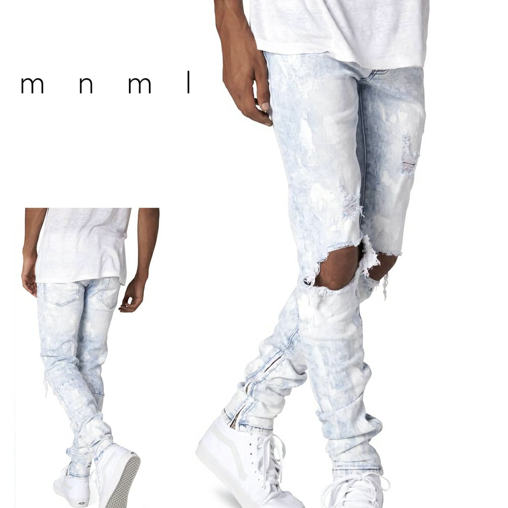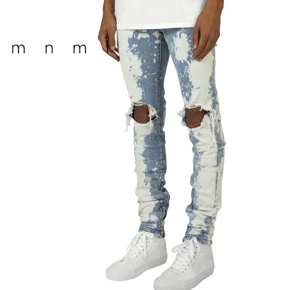 mnml ミニマル M1 SPLASH STRETCH DENIM Blue トレンド ストレッチ デニム パンツ ジーンズ アンクルジップ 28/29/30/32/34