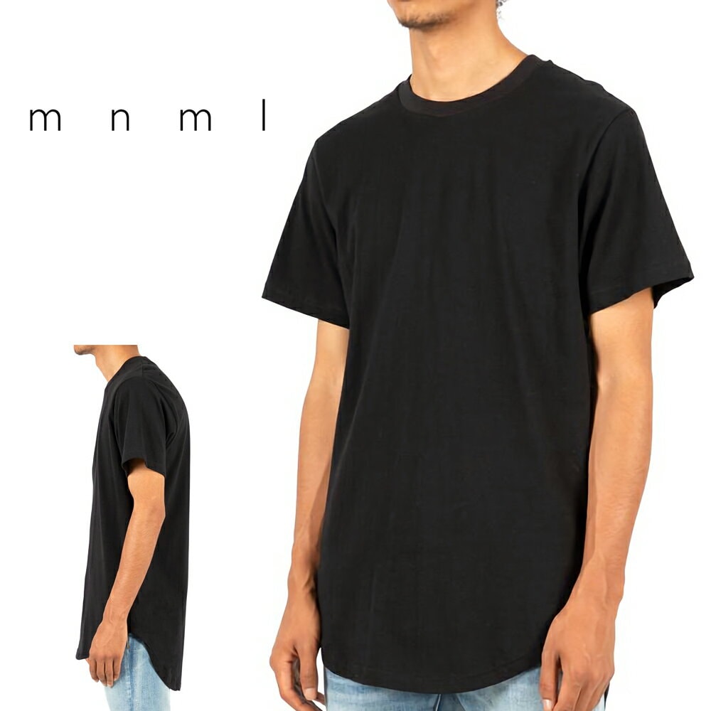 mnml ミニマル SPLIT BACK SCALLOP TEE BLACK トレンド ラウンドカット 半袖 Tシャツ 無地 S/M/L/XL