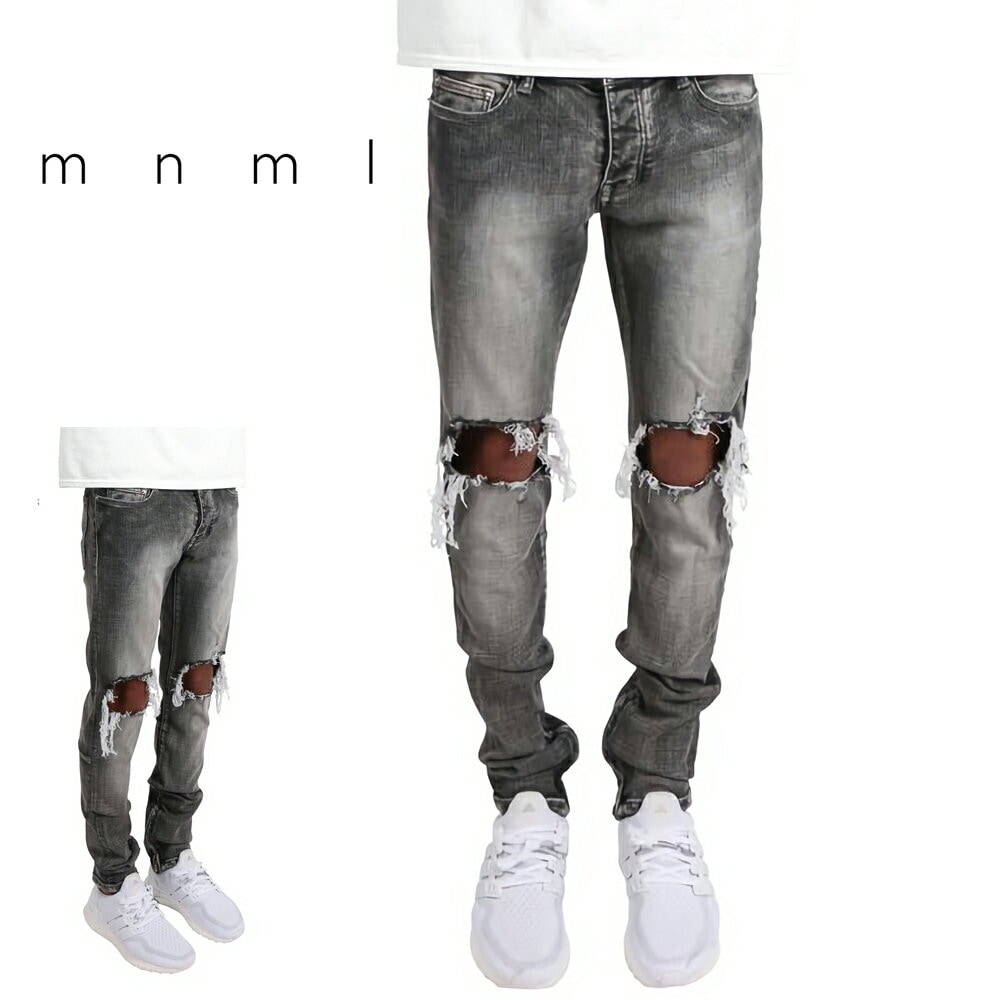 mnml ミニマル M1 STRETCH DENIM Grey トレンド ストレッチ デニム パンツ ジーンズ アンクルジップ 28/29/30/32/34